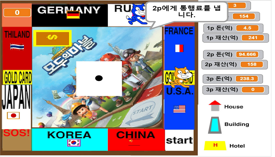 모두의 마블은 제한 시간 내에 돈과 건물을 가장 많이 보유한 사람이 이기는 게임입니다. 이 게임은 2~3인용이 가능합니다.
